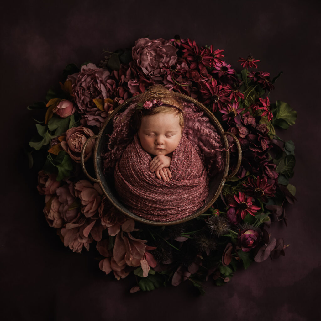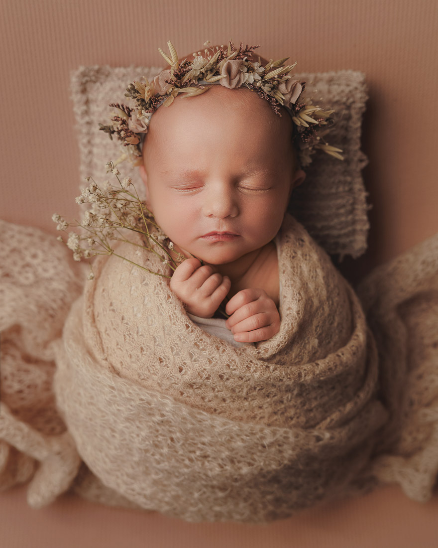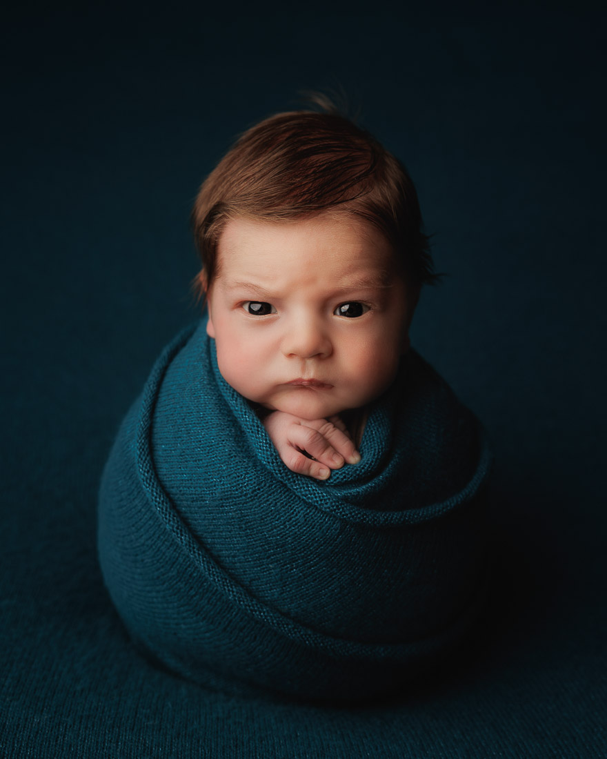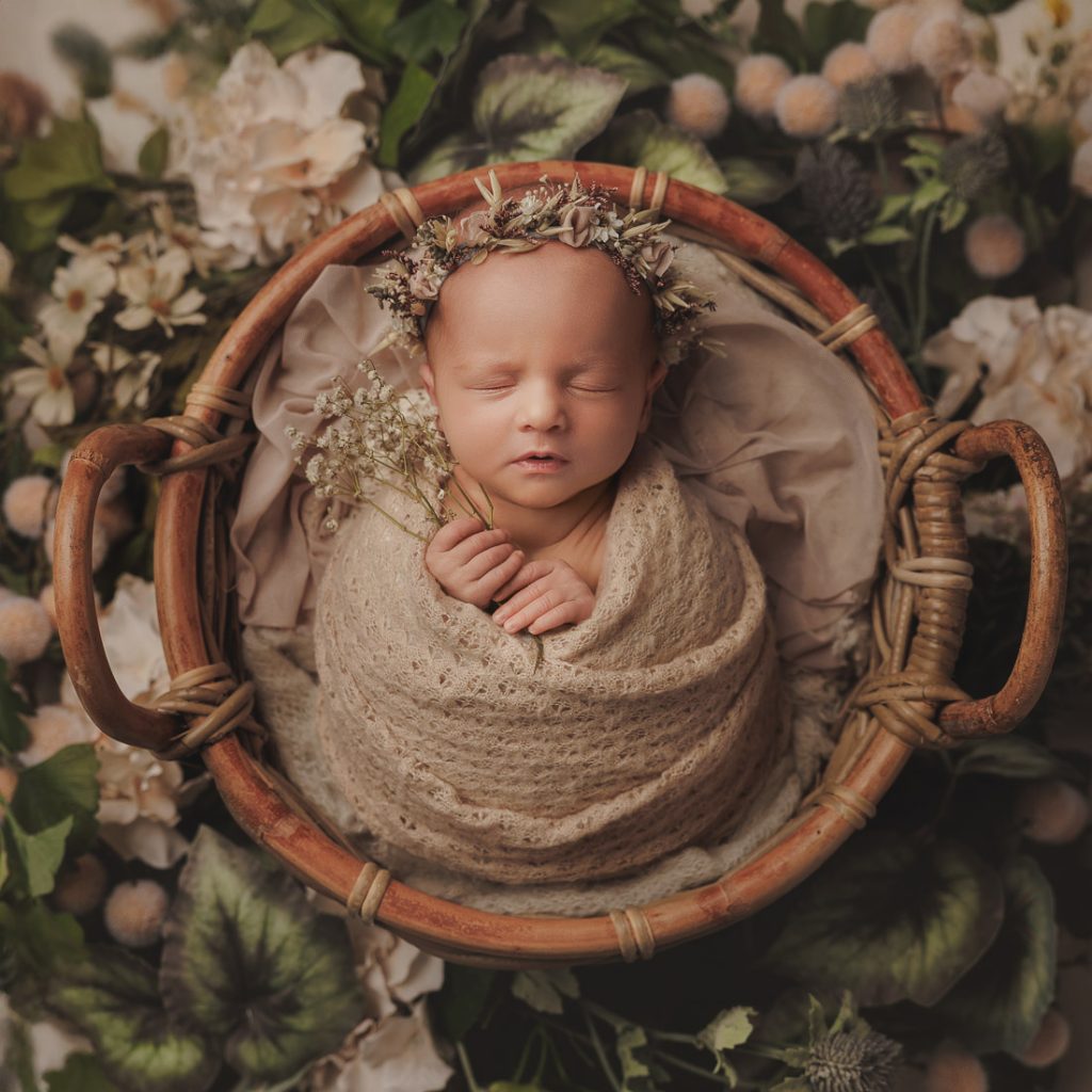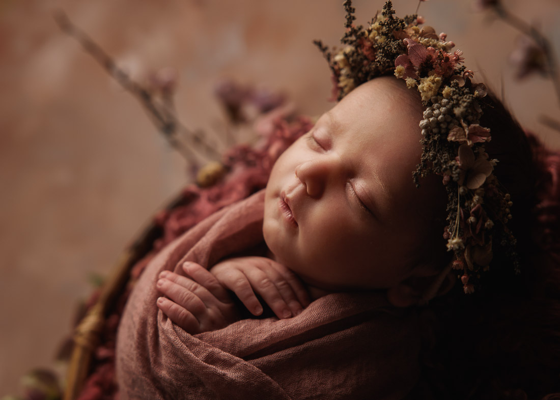 Every baby is unique and their comfort comes first. They’ve just come out of the safety of the womb and when they are warm and swaddled in my cosy studio they tend to be really comfortable and calm. Once wrapped, I can work my magic around them to create some beautiful portraits using a few of my carefully chosen props and fabrics. If you’re looking for more than just wrapped images, please check out my Signature and Heirloom Newborn Sessions which are a much more comprehensive and story telling.