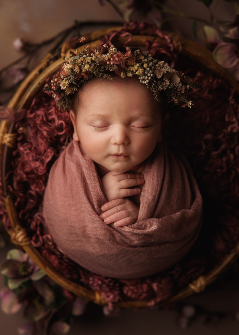 Some parents express concern about posing and wrapping and the possibility of baby being uncomfortable. May I take this time to reassure you that I never pose baby or place them in props when they are not at their most comfortable. This means that I only move baby into poses that they naturally go into themselves and I only do this when they are content and safe. I pride myself on this natural style of newborn photography which shows off your baby in a beautiful, relaxed positions, artistically posed and decorated with bespoke accessories and props. I think it’s important to also focus on your baby’s tiny details such as lips, hands, eyelashes and toes so you should expect some macro shots too.